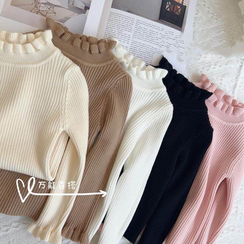 女童荷叶边打底毛衣2025秋冬装新款洋气百搭儿童女宝宝基础针织衫