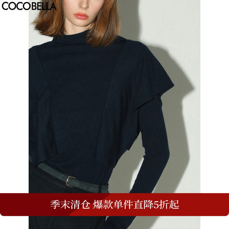COCOBELLA设计感荷叶边假两件针织衫女高领斗篷毛衣MZ0069-2