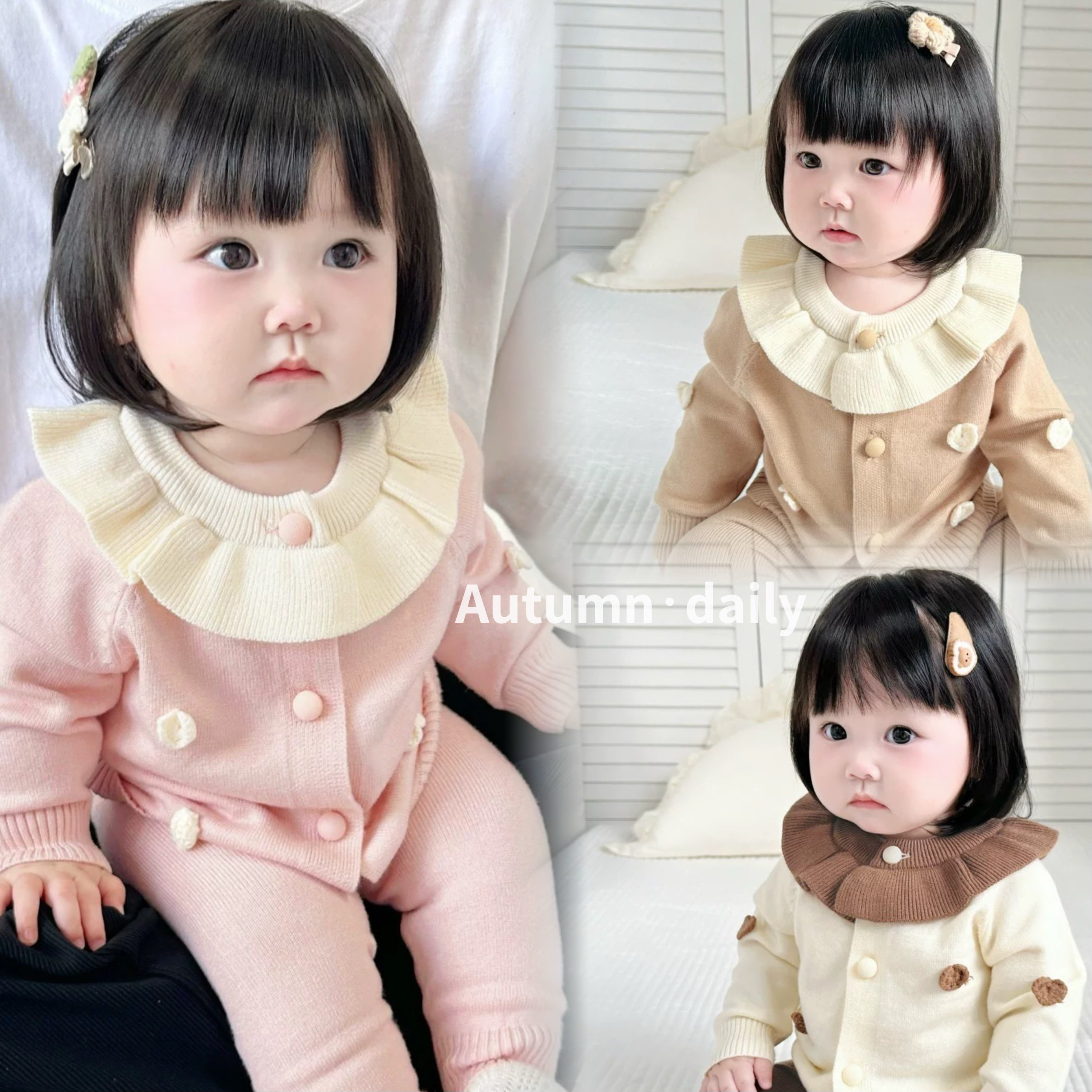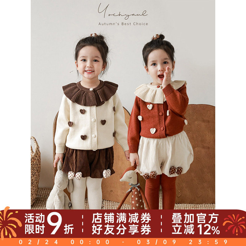 新生婴儿衣服春秋女宝宝爱心荷叶边开衫毛衣外套针织长裤公主套装