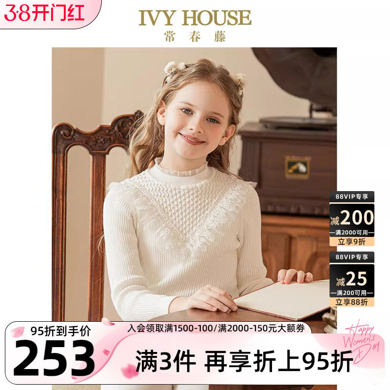 IVY HOUSE常春藤儿童装女童秋季新款 荷叶边半高领毛衣针织衫打底