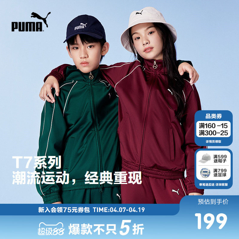 PUMA彪马童装新款儿童秋套装男外套休闲长裤T7条纹时尚运动2件套