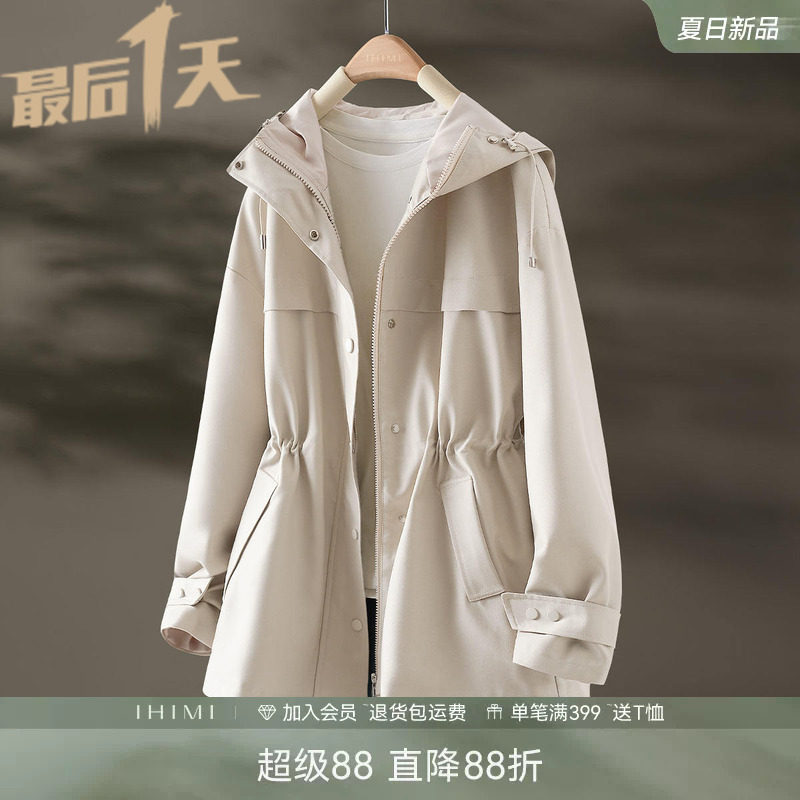 IHIMI海谧春秋爆款连帽2026春季新款风衣外套女收腰短款休闲春装