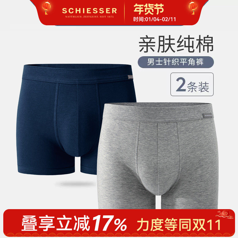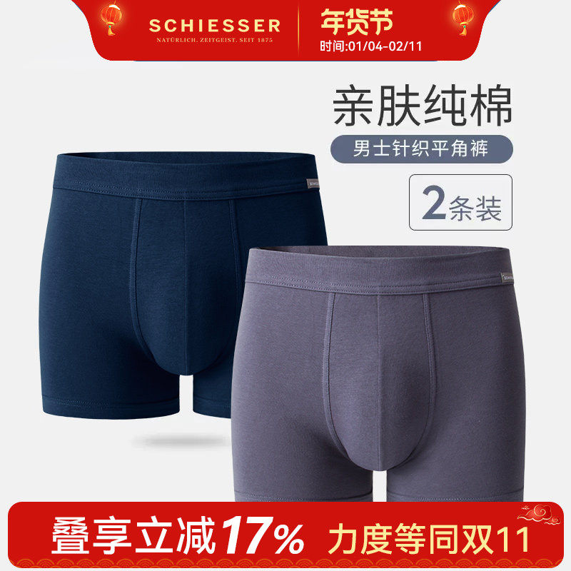 2条装Schiesser舒雅内裤男士纯棉中腰平角短裤透气四角裤衩修身款