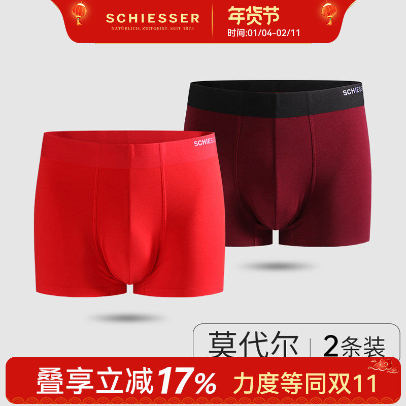 2条装schiesser舒雅内裤男士薄款透气莫代尔本命年红色平角短裤衩