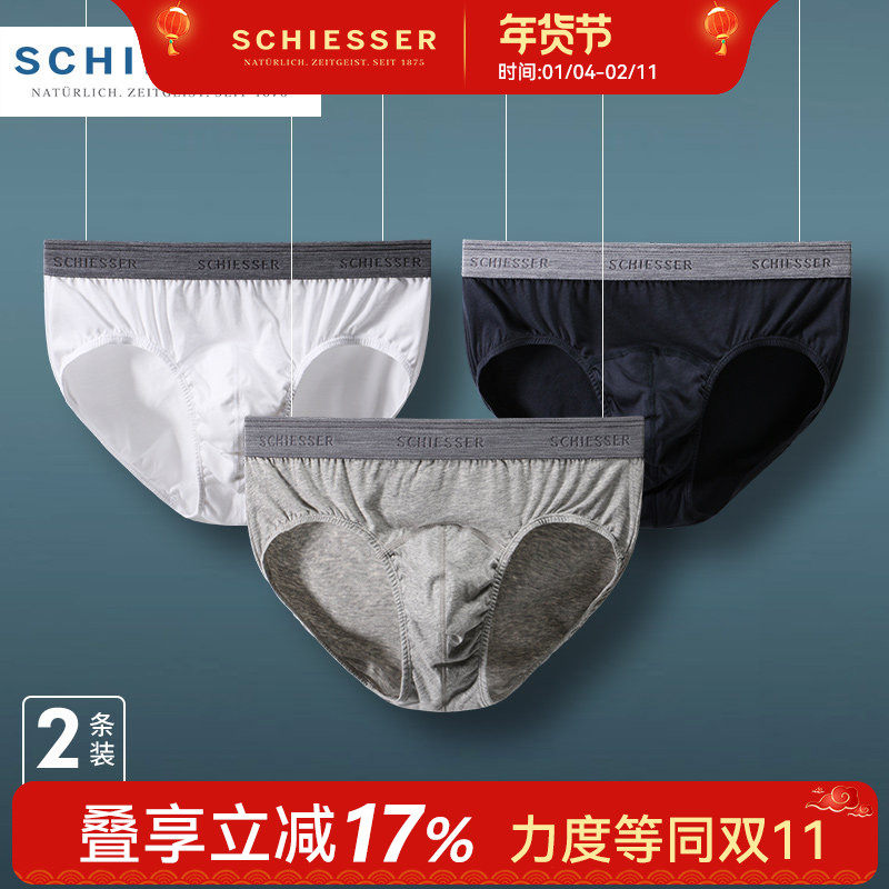 2条装Schiesser德国舒雅内裤男士薄款纯棉舒美棉透气中腰三角裤头