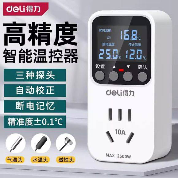 得力温控器鱼缸温控开关控制器控温器数显智能全自动温控插座高清