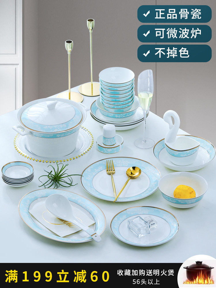 景德镇骨瓷餐具套装高档奢华送礼碗盘组合欧式陶瓷器碗碟套装家用