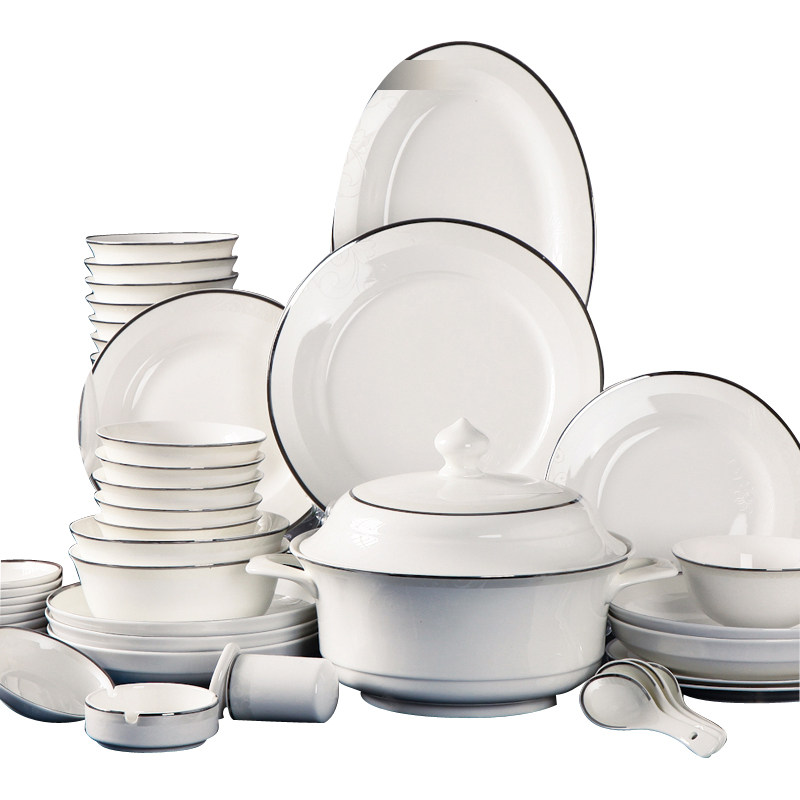 顺祥陶瓷骨瓷碗碟套装家用纯白特别好看的饭碗釉下彩碗盘高级餐具