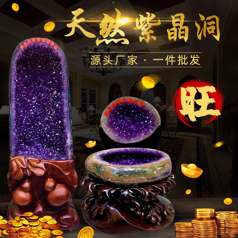 天然紫晶洞摆件水晶洞紫水晶洞聚宝盆钱袋子客厅办公家居装饰礼品