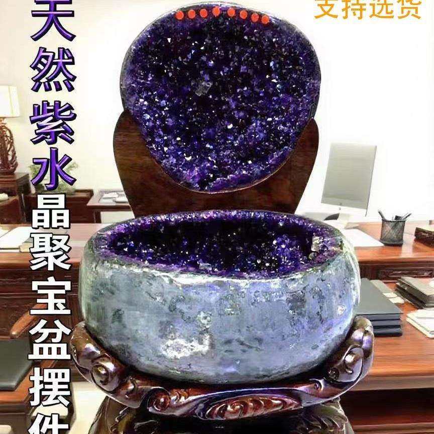 高品天然紫水晶摆件聚宝盆紫水晶洞晶簇家居玄关摆件开业新居送礼