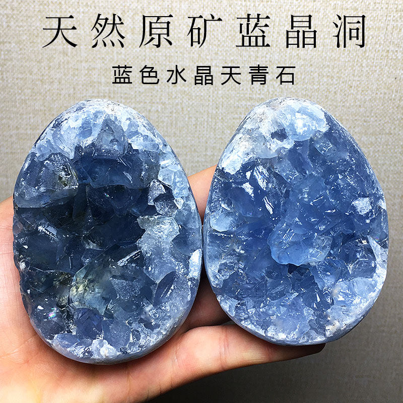 天然蓝晶洞蓝色水晶簇天青石原石恐龙蛋形心形聚宝盆家居桌面摆件