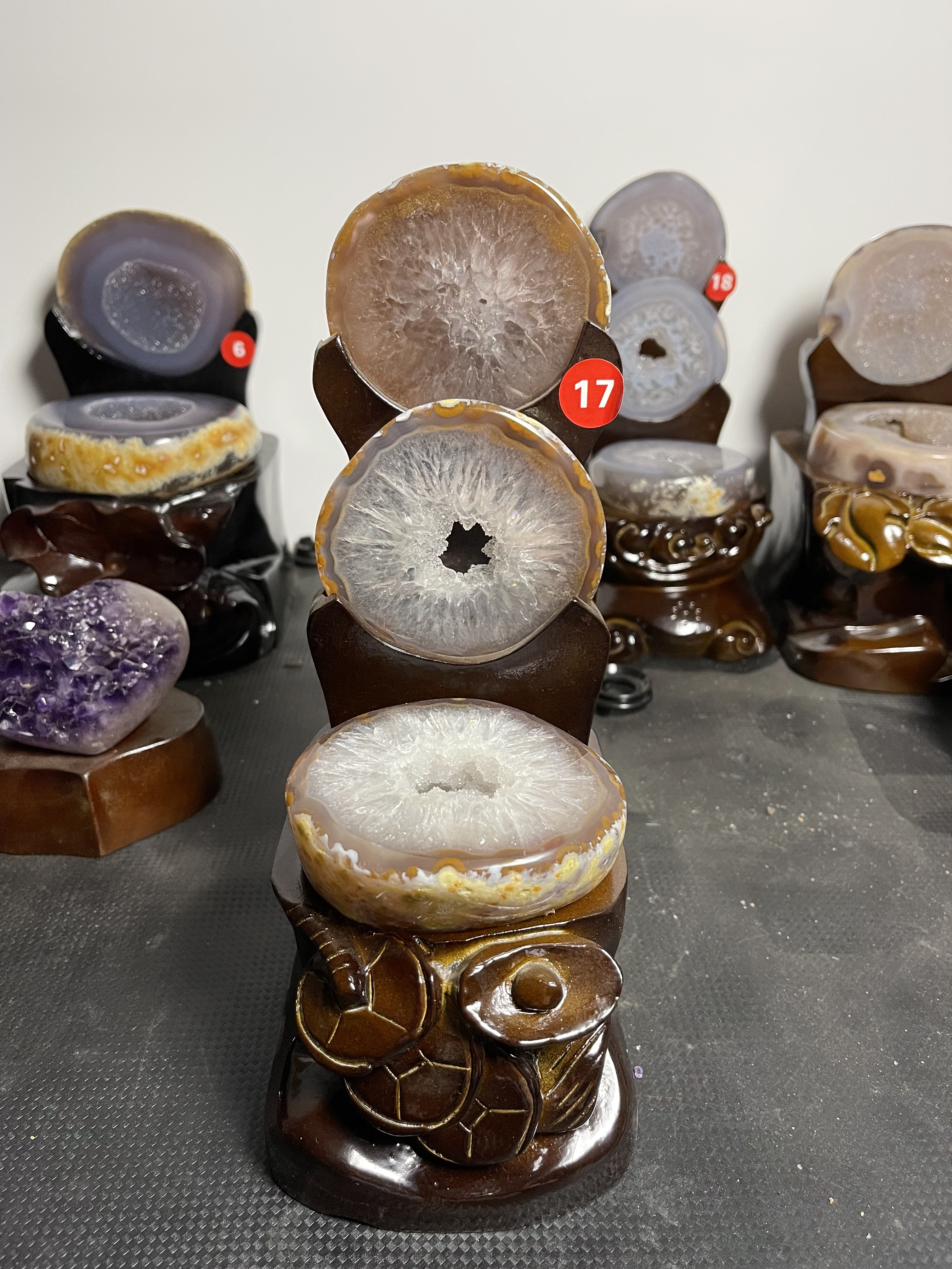 玛瑙聚宝盆原石摆件奇石天然观赏石雨花石色水晶洞镇宅开运石包邮