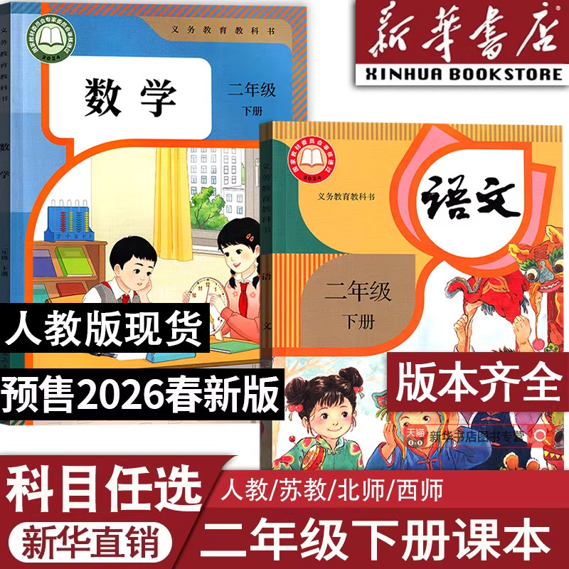 【26春季新版部分现货】2026使用小学新版2二年级下册语文数学英语书全套人教版北师版苏教版西师语数道德二年级下学期2下课本教材