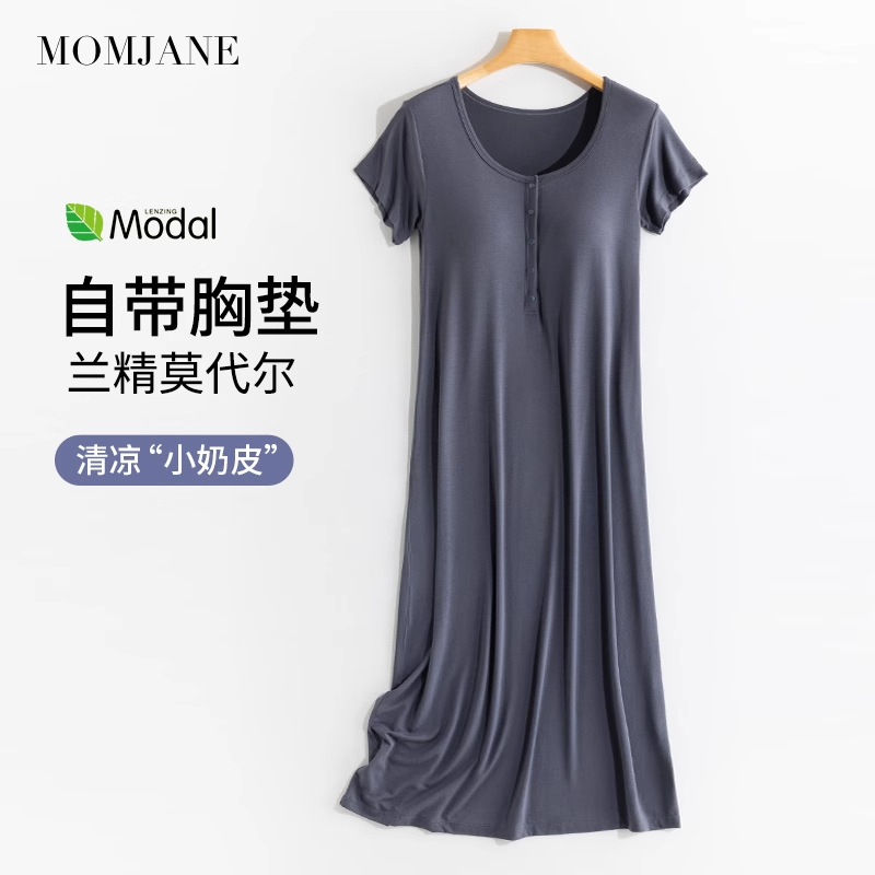 带胸垫孕妇裙哺乳睡裙月子裙孕妇睡衣莫代尔产后喂奶连衣裙短袖裙