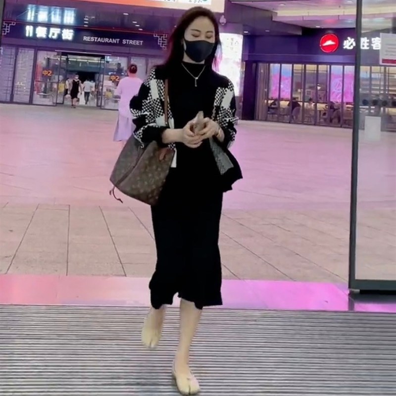 哺乳衣服c秋冬季外出辣妈款针织开衫外套毛衣女喂奶连衣裙两件套