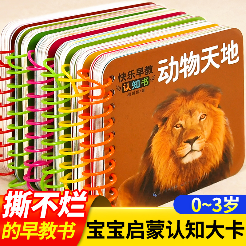 婴幼儿启蒙认知早教书翻翻卡撕不烂可啃咬绘本0-1-2-3岁宝宝书籍一岁半两岁益智玩具大卡认识动物书颜色人物形状交通工具6个月以上