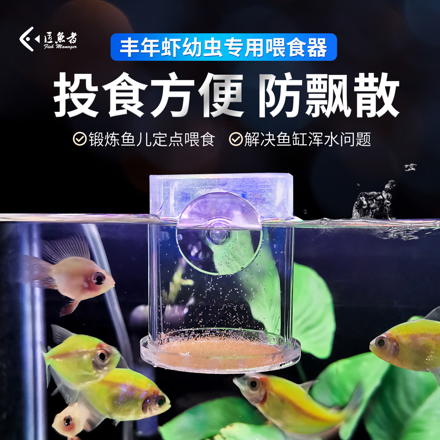 亚克力丰年虾喂食器小鱼孔雀鱼喂鱼管卤幼虫专用喂食圈杯喂虾神器