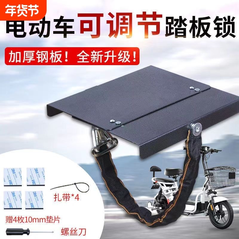 电动车电瓶锁踏板防偷适用雅迪爱玛台铃电瓶车电池锁链条保护盖板