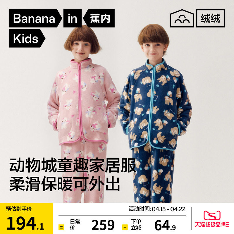 蕉内绒绒320Home儿童家居服套装男童女童法兰绒印花长袖长裤睡衣