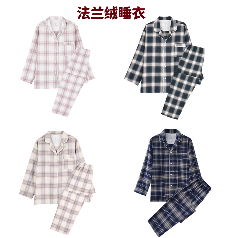 日系无印风格纯棉法兰绒睡衣秋冬男女款无侧缝磨毛家居服情侣套装