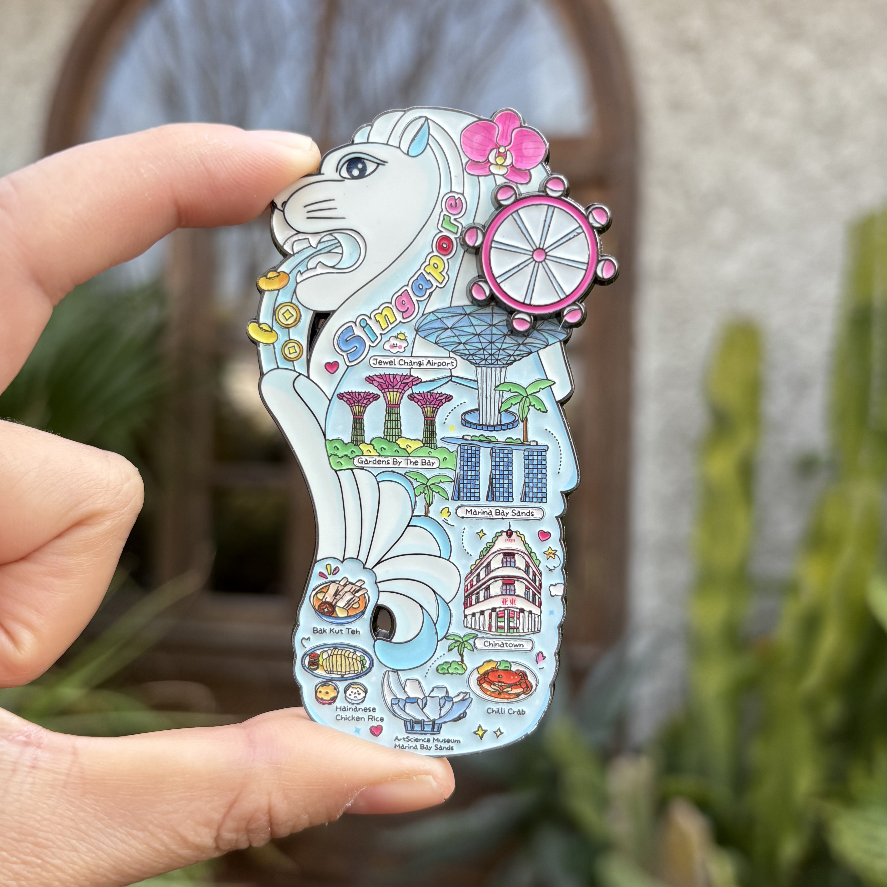 礼盒装 新加坡鱼尾狮金属冰箱贴 旅游纪念品磁吸文创伴手礼可转动