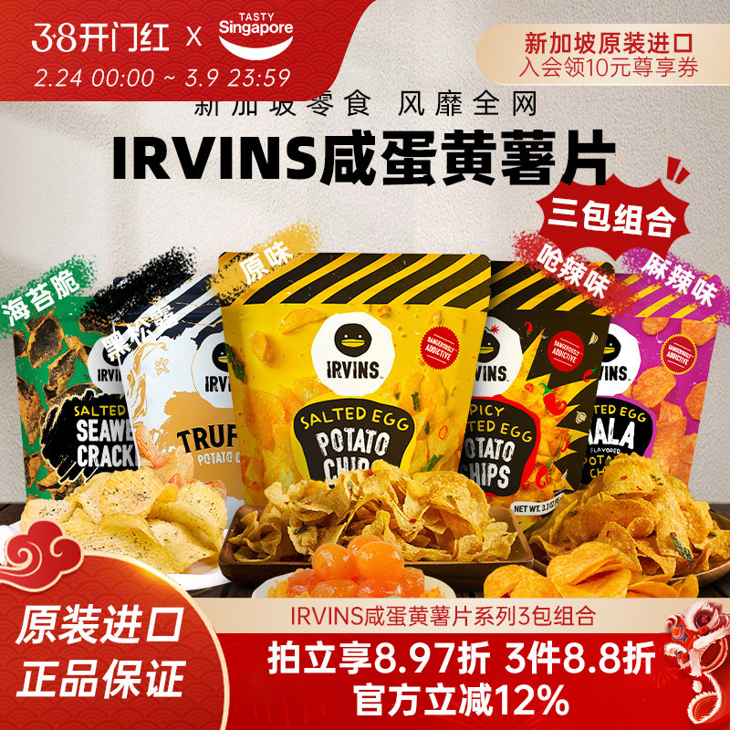新加坡进口IRVINS咸蛋黄薯片黑松露海苔脆休闲零食特产伴手礼组合