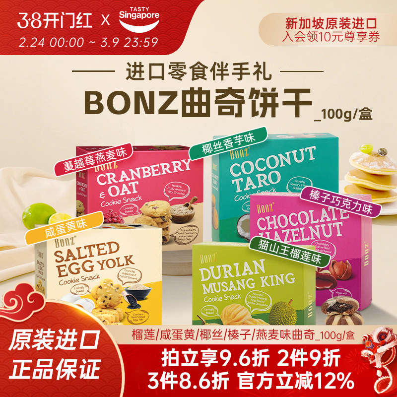 新加坡进口BONZ榴莲咸蛋黄蔓越莓曲奇饼干点心休闲零食伴手礼特产