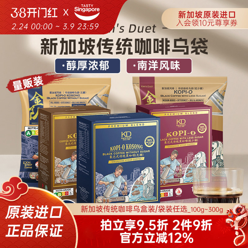 新加坡进口Kim's Duet金队南洋传统咖啡乌袋速溶无糖少糖黑咖奶咖
