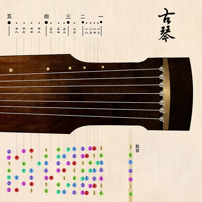 正版专利古琴音位图桌垫古琴初学入门助记音位 保护琴桌 练习音准