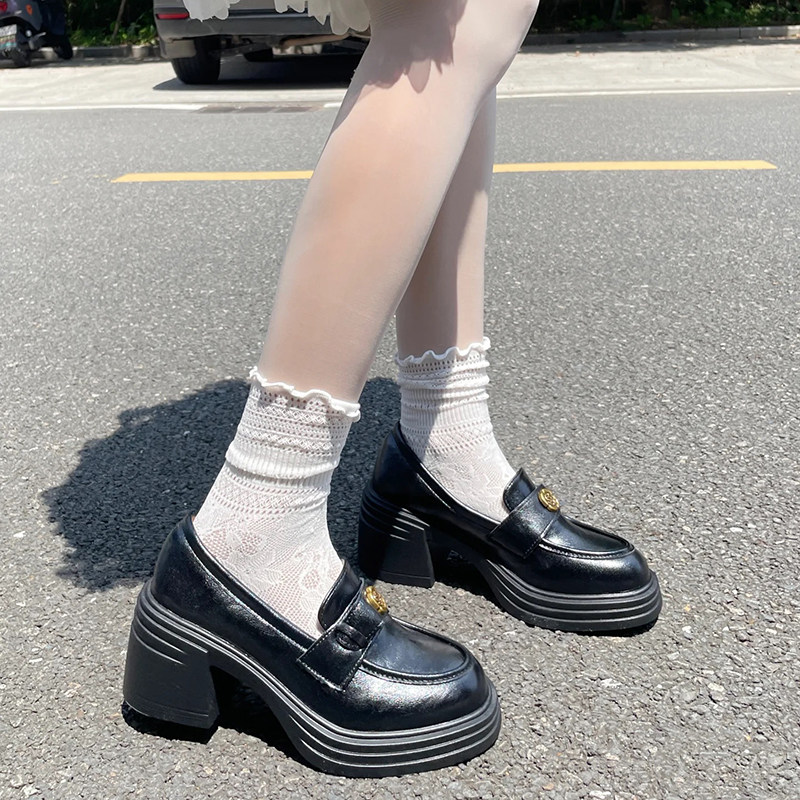- 黑色粗跟小皮鞋英伦风真皮女鞋