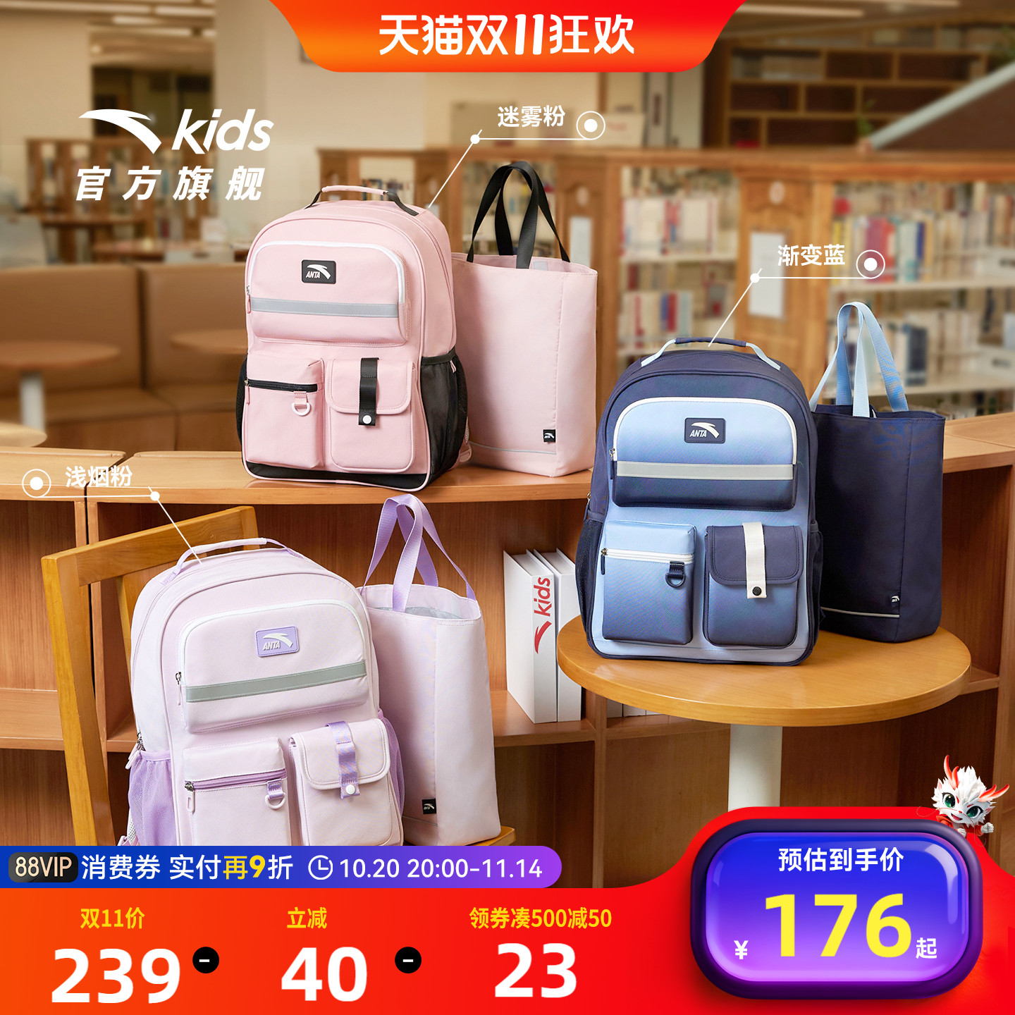 安踏儿童书包女生小学生书包男赠补习袋护脊双肩包减负书包背包潮