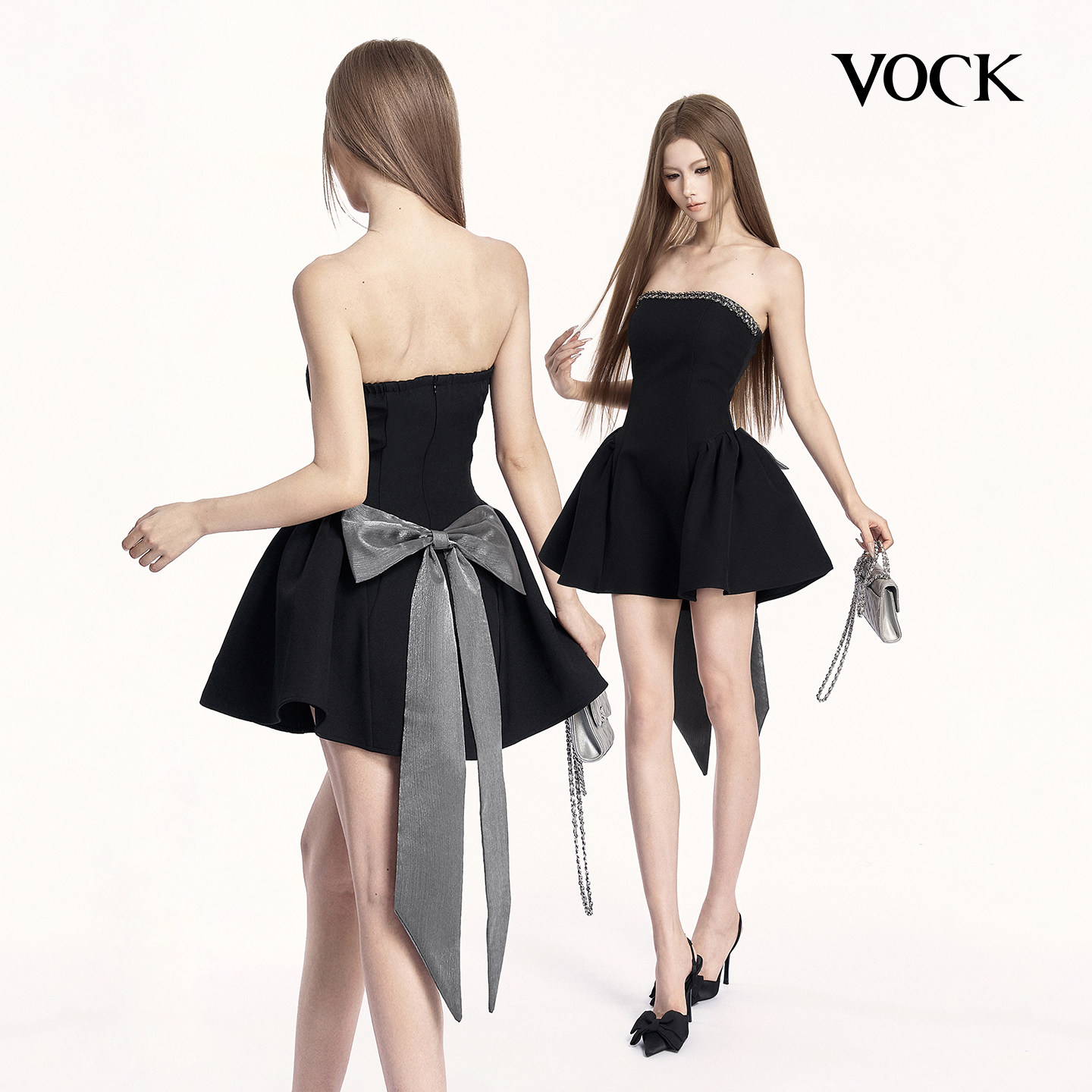 VOCK 浪漫挽歌 法式千金高级感小黑裙情人节闪钻年会礼服连衣裙子