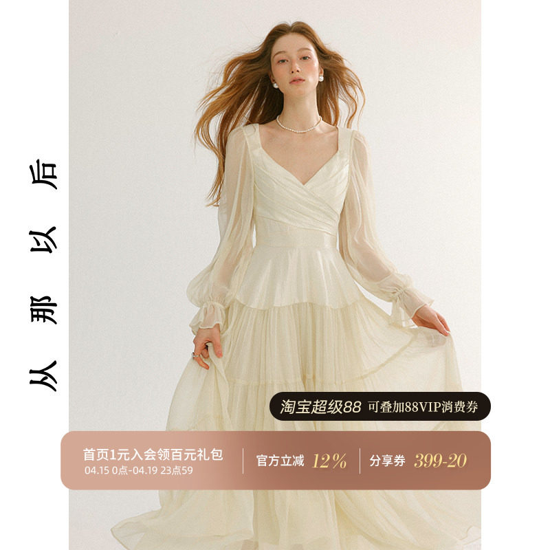 从那以后白色长裙秋冬系穿搭高级感小礼服裙年会长袖连衣裙女夏季
