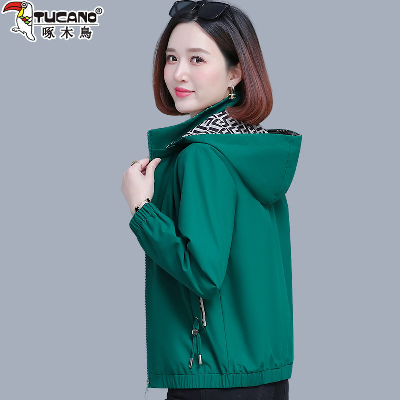 啄木鸟绿色风衣女款2025新款春秋季中年妈妈收腰显瘦连帽初春外套