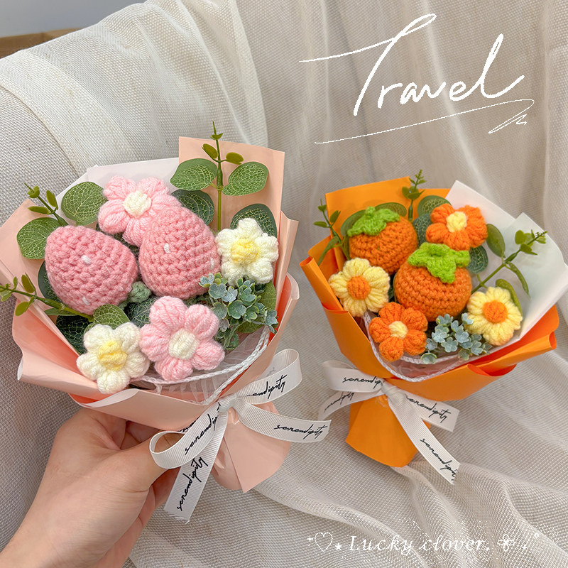 毛线花手工花针织小花束玫瑰花向日葵水果仿真花成品编织生日礼物