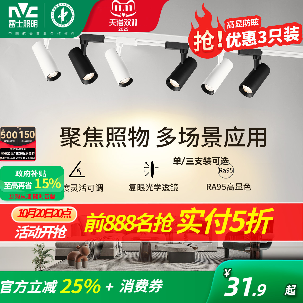 雷士照明射灯轨道射灯店铺商用轨道灯led射灯明装轨道客厅家用
