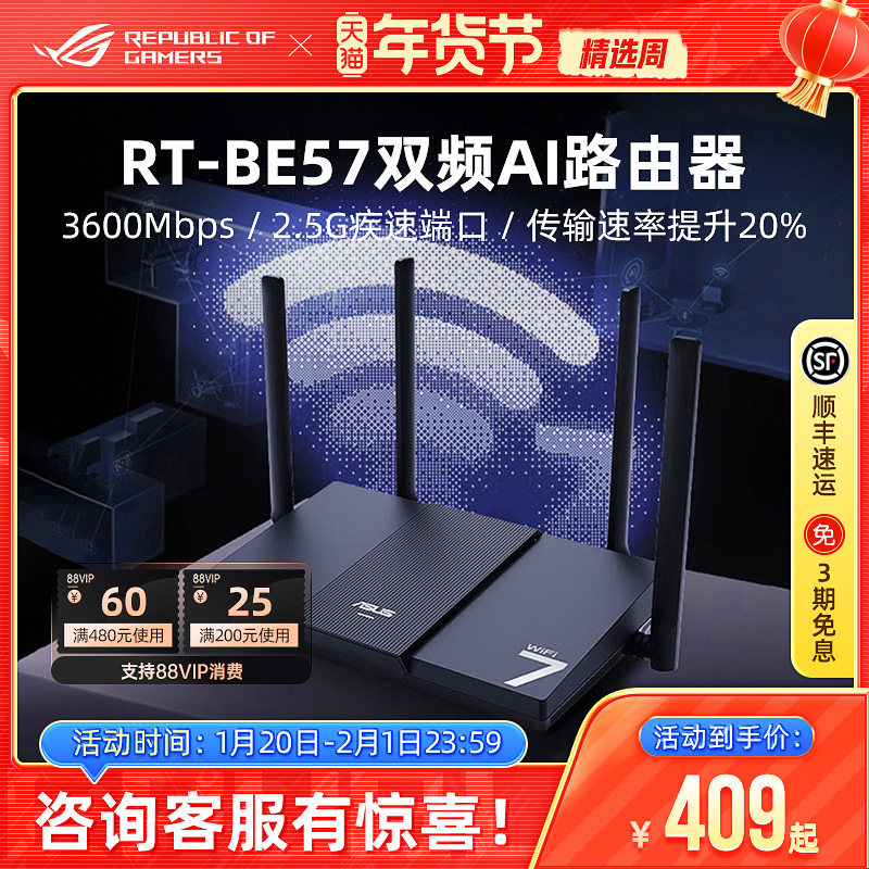 RT-BE57路由器WiFi7电竞游戏无线加速家用千兆路由2.5G口全屋Ai随心组华硕
