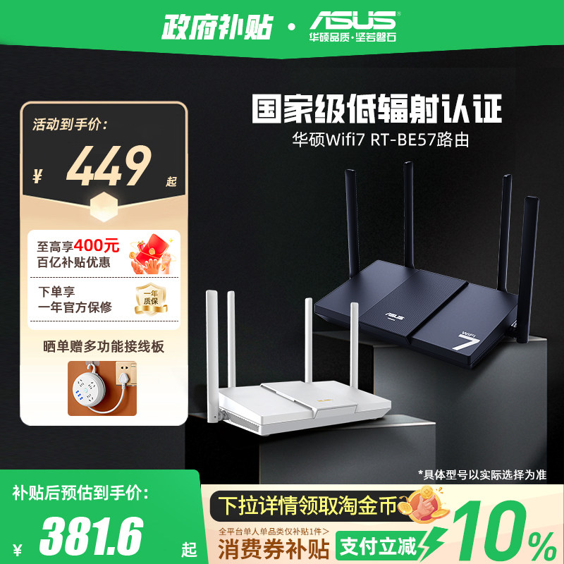 【政府补贴10%,全国可领】华硕RT-BE57路由 WiFi7电竞游戏路由器 家用无线千兆路由 全屋WiFi7 Ai随心组