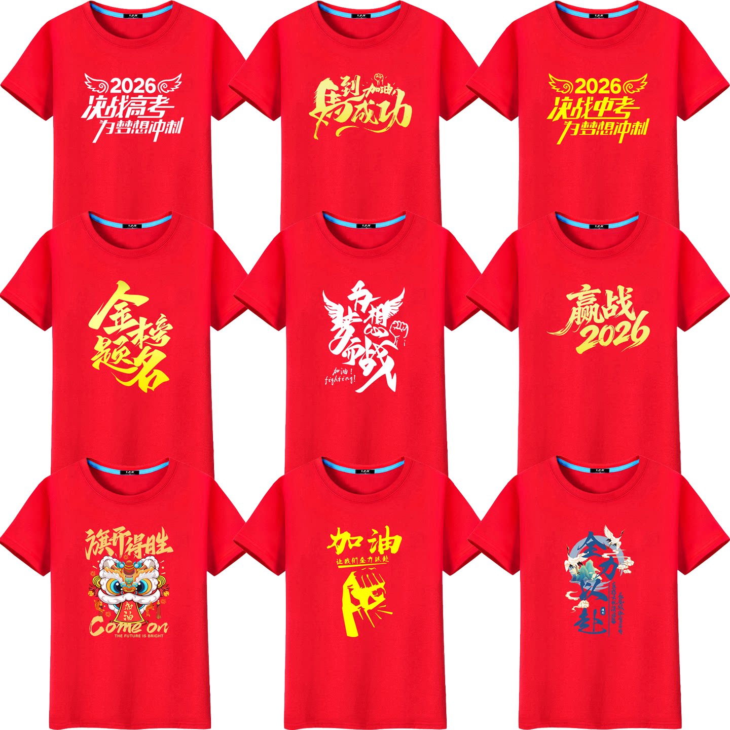 2026高考T恤红色衣服中考短袖送考试加油专用运动会学生班服定制