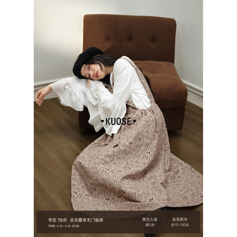 one more复古印花背带裙女高级感灯芯绒连衣裙2025冬季法式吊带裙