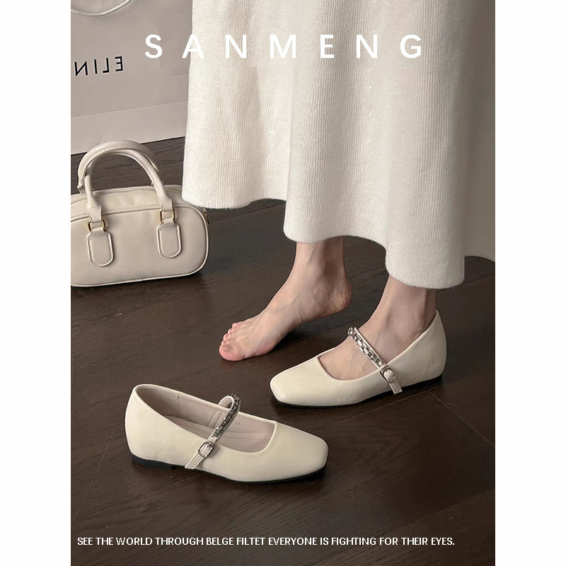 星期六法式玛丽珍鞋女2025尖头一字扣平底单鞋软底浅口通勤工作鞋