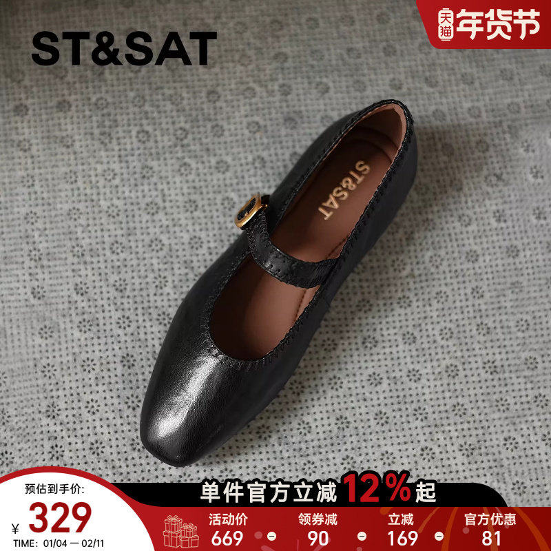 星期六真皮法式玛丽珍女鞋2025年春季新款方头一字扣平底通勤单鞋