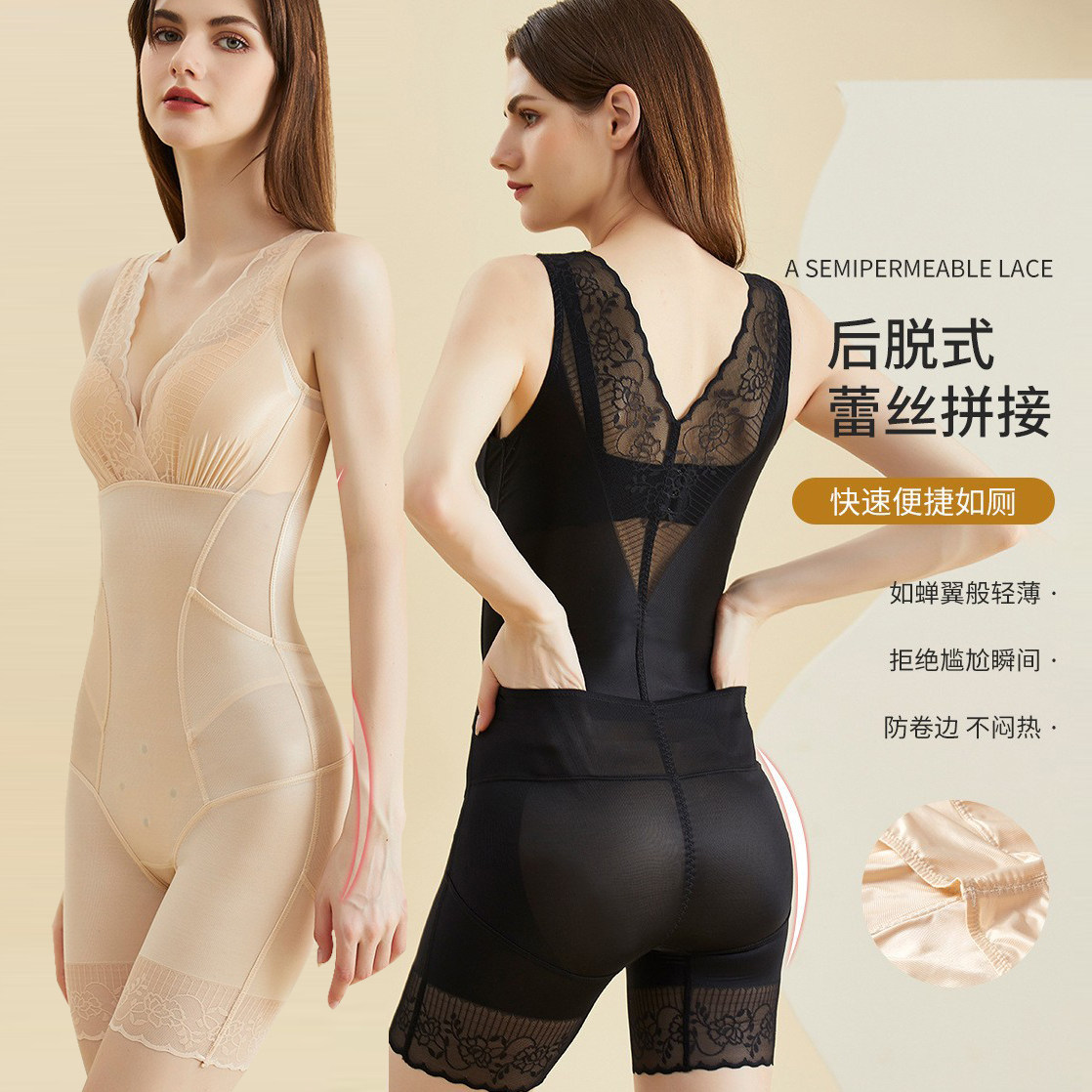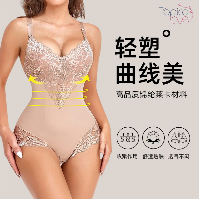 新品 欧美连体衣女士蕾丝聚拢内衣束身衣收腹提臀塑身衣女美体塑