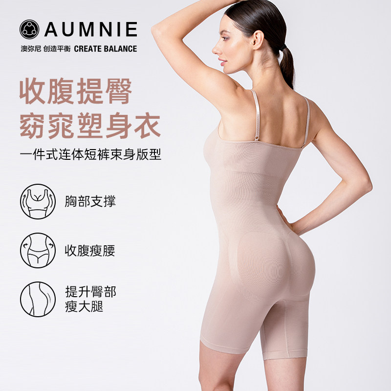 AUMNIE澳弥尼提臀无缝吊带女士束身衣收腹美体支撑塑形紧身连体衣