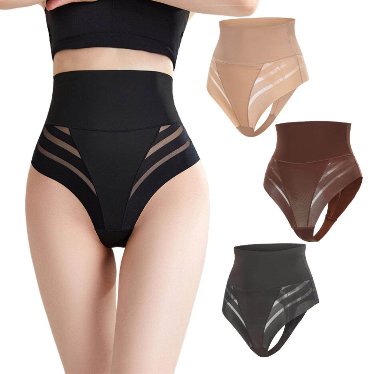 女高腰丁字裤欧美束身衣收腹束腰提臀塑身裤大码内裤条纹网纱丁裤