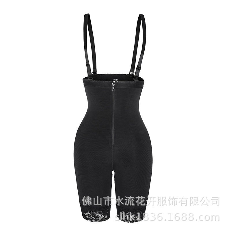 新品 欧美高腰收腹提臀裤吊带束身衣收腹裤美体连体内衣蕾丝开裆