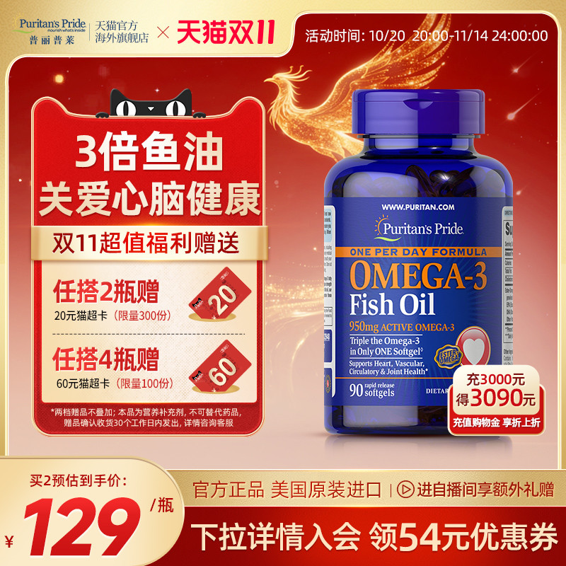 普丽普莱高浓度鱼油深海鱼软胶囊官方旗舰店正品进口鱼油omega3