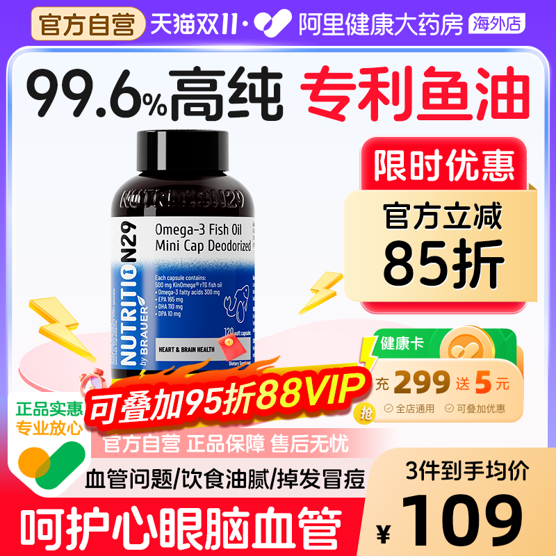 N29深海鱼油Omega-3软胶囊高纯度99.6%官方旗舰店正品人用进口