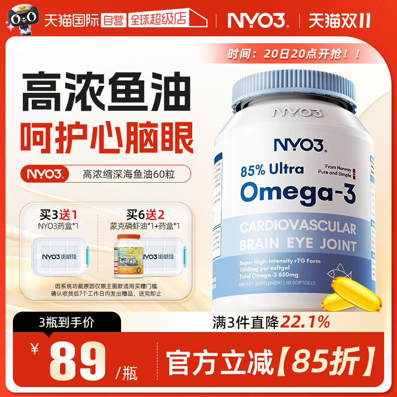 【自营】NYO3挪威高浓缩深海鱼油omega3学生记忆力软胶囊人用进口