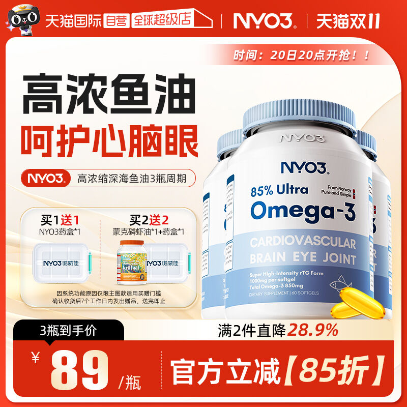【自营】NYO3诺威佳挪威97%高EPA度鱼油omega3深海鱼油成人软胶囊
